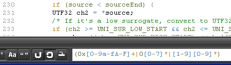 Sometimes its the little things that make the difference. When you're entering a regular expression, you get syntax highlighting in the text box:
