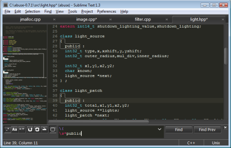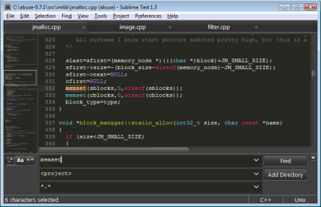 New features in 1.3 are find in files, revamped find and replace panels that preview results as you type and accepts multi-line inputs. Also new are goto symbol, syntax highlighting support for more languages (ASP, JSP, ActionScript and YAML), speed improvements, an expanded API and more. Almost every area of functionality has been improved and polished in version 1.3.