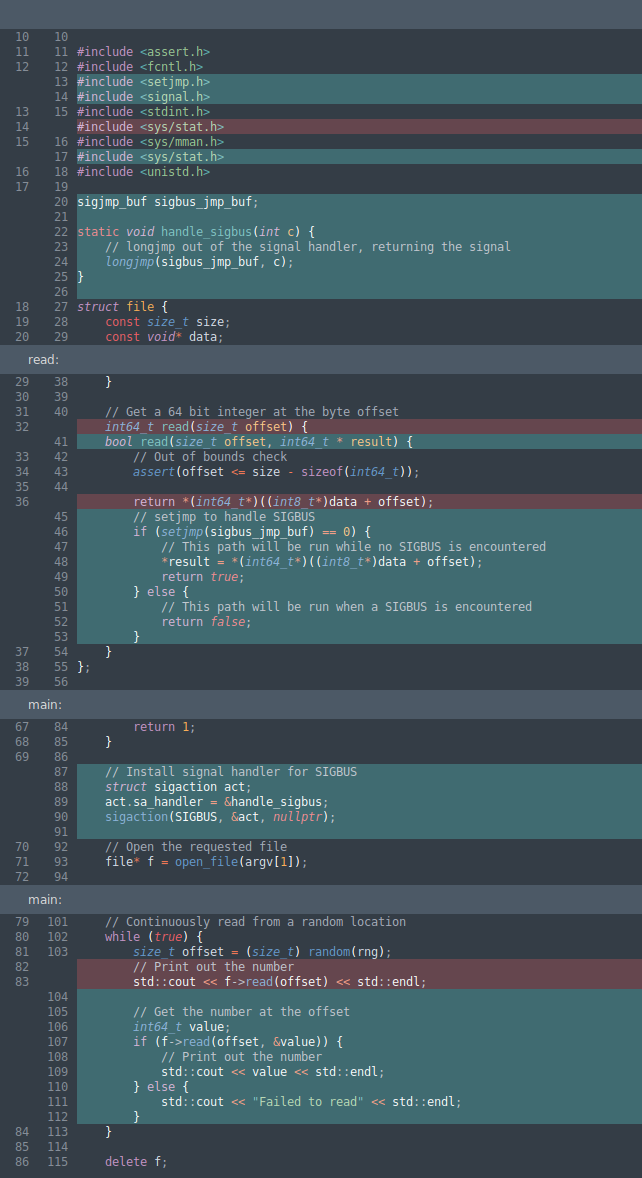 There, now you just need to remember to always call install_signal_handlers for every application, and wrap all file accesses with safe_mmap_try. Annoying, but manageable. So now you've covered POSIX systems, but what about Windows?